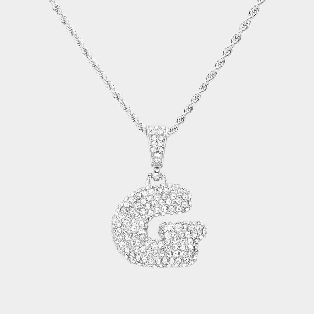 iLLASPARKZ -G- Rhinestone Initial Monogram Pendant Brass Chain Necklace