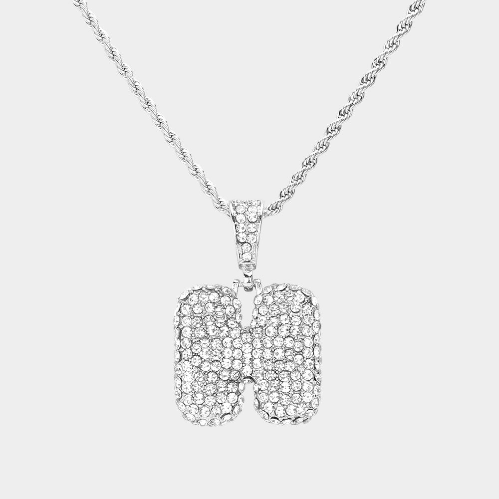 iLLASPARKZ -H- Rhinestone Monogram Pendant Brass Chain Necklace