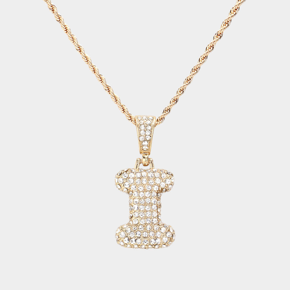 iLLASPARKZ -I- Rhinestone Monogram Pendant Brass Chain Necklace