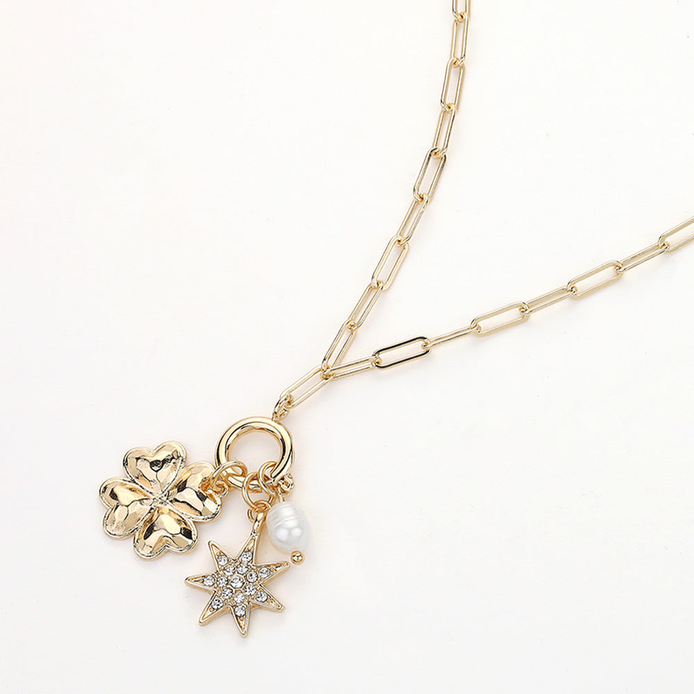 iLLASPARKZ Metal Closter Pearl Stone Paved Spike Charm Pendant Paperclip Chain Necklace