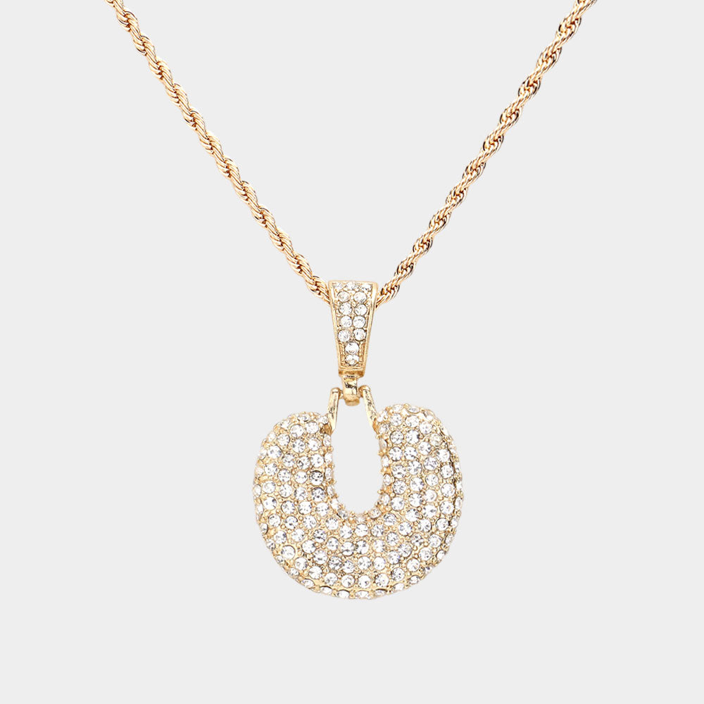 iLLASPARKZ -U- Rhinestone Monogram Pendant Brass Chain Necklace