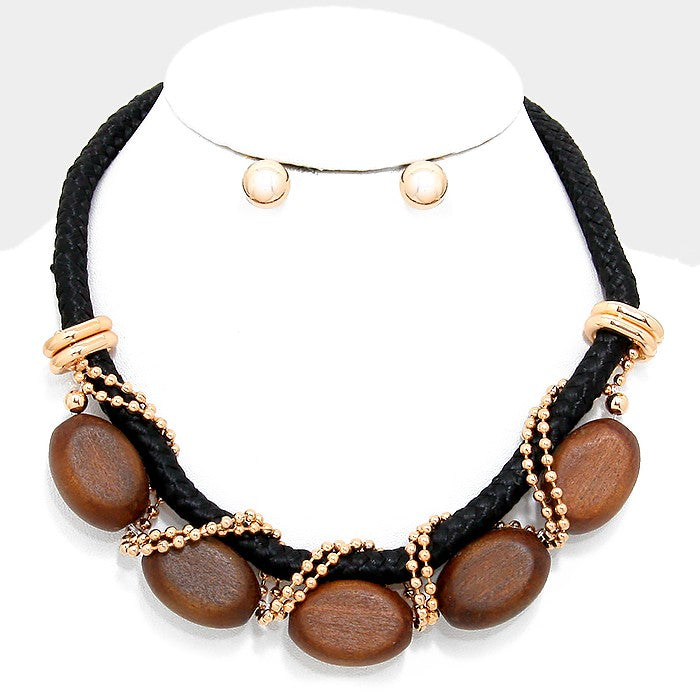 iLLASPARKZ Wooden bead & twisted metal chain necklace