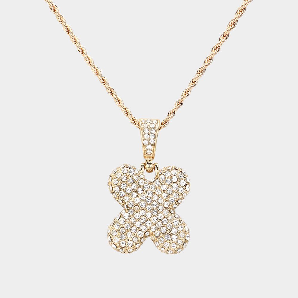 iLLASPARKZ -X- Rhinestone Monogram Pendant Brass Chain Necklace