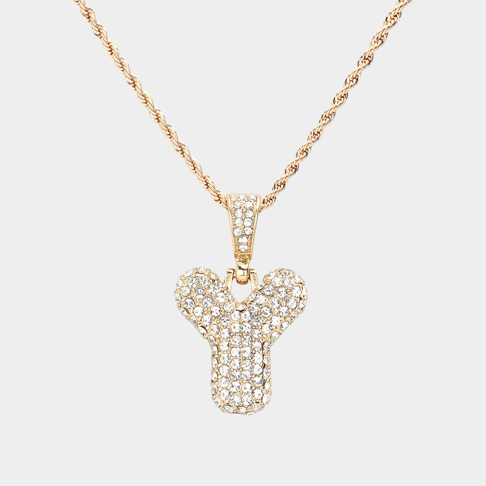 iLLASPARKZ -Y- Rhinestone Monogram Pendant Brass Chain Necklace