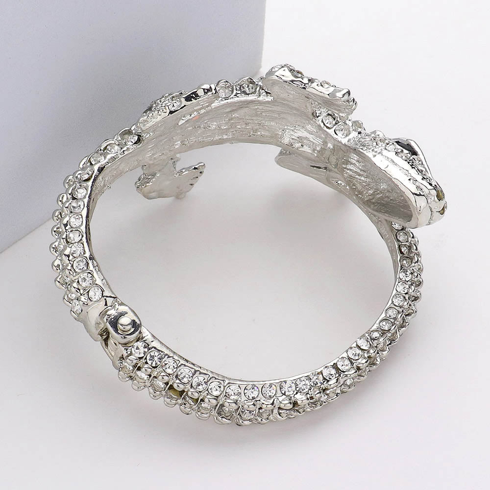 iLLASPARKZ Crystal Rhinestone Crocodile/Alligator Embellished Evening Hinged Cuff Bracelet
