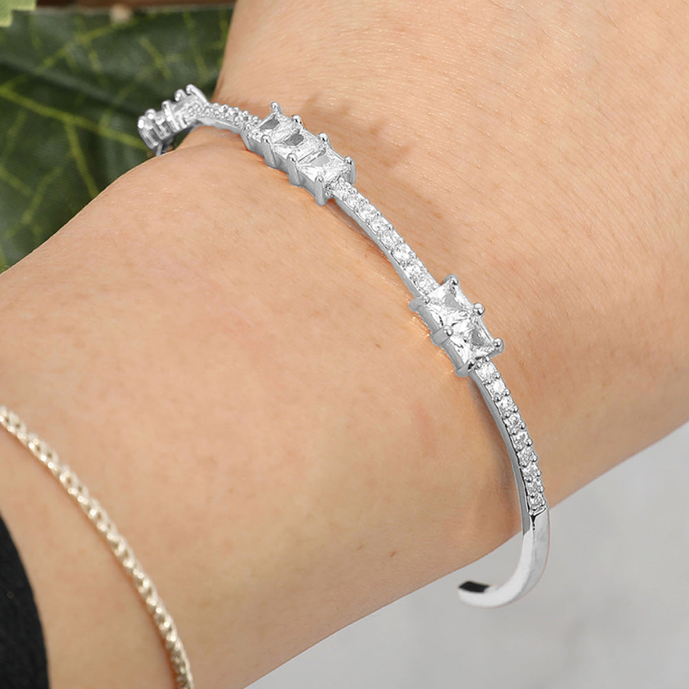 iLLASPARKZ Double Square CZ Stone Cluster Station Pointed Evening Cuff Bracelet