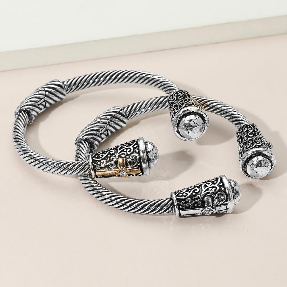 iLLASPARKZ Metal Ball Cross Embossed Tip Antique Metal Hinged Cuff Bracelet