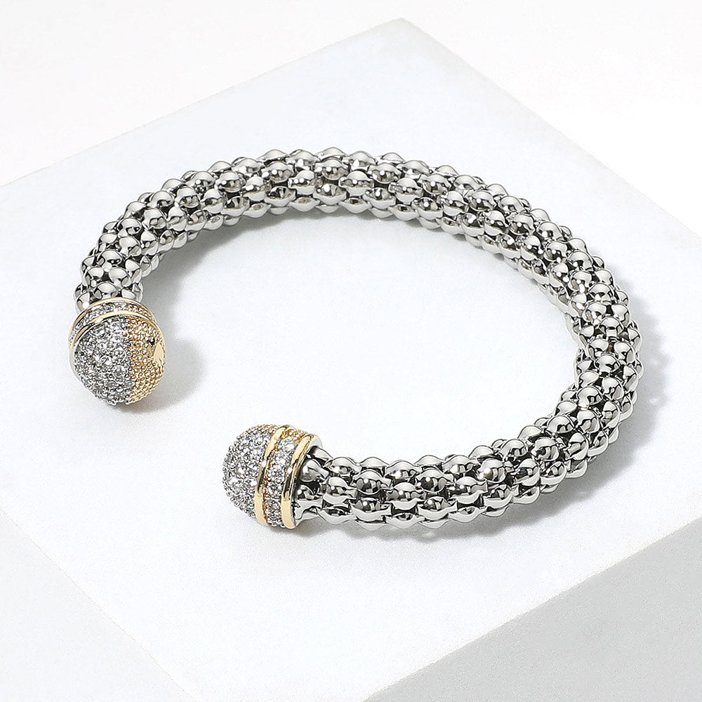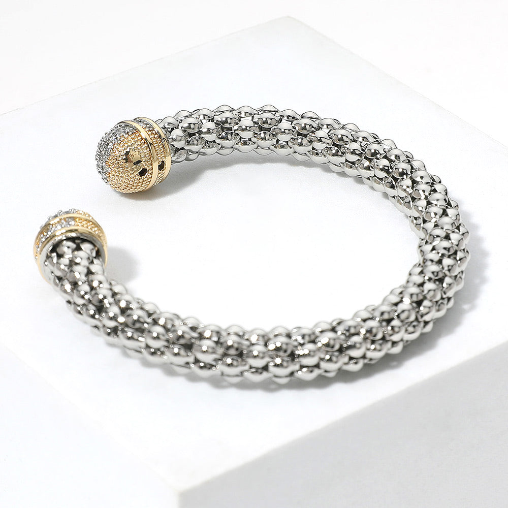 iLLASPARKZ Two Tone CZ Stone Paved Tip Textured Cuff Bracelet