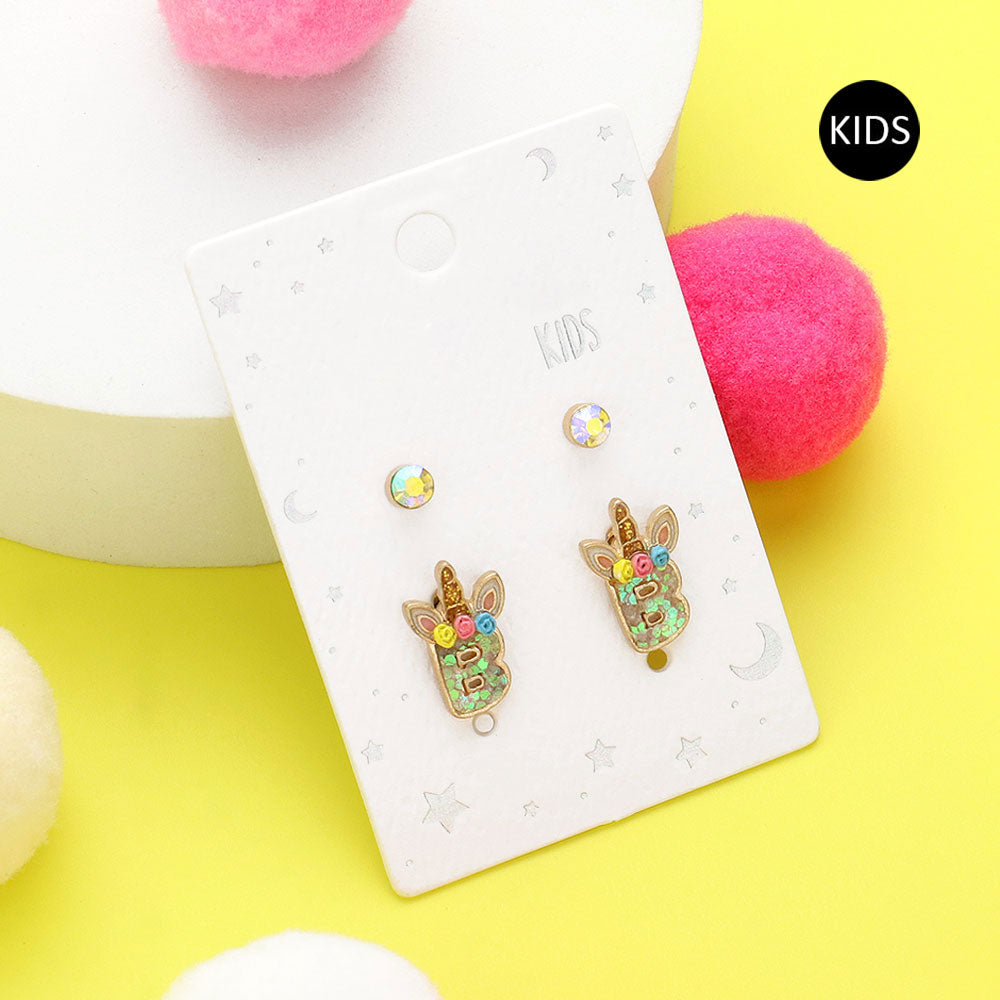 iLLASPARKZ 2Pairs - B Round Stone Unicorn Monogram Stud Kids Earrings