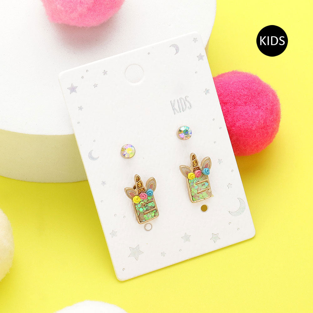 iLLASPARKZ 2Pairs - E Round Stone Unicorn Monogram Stud Kids Earrings
