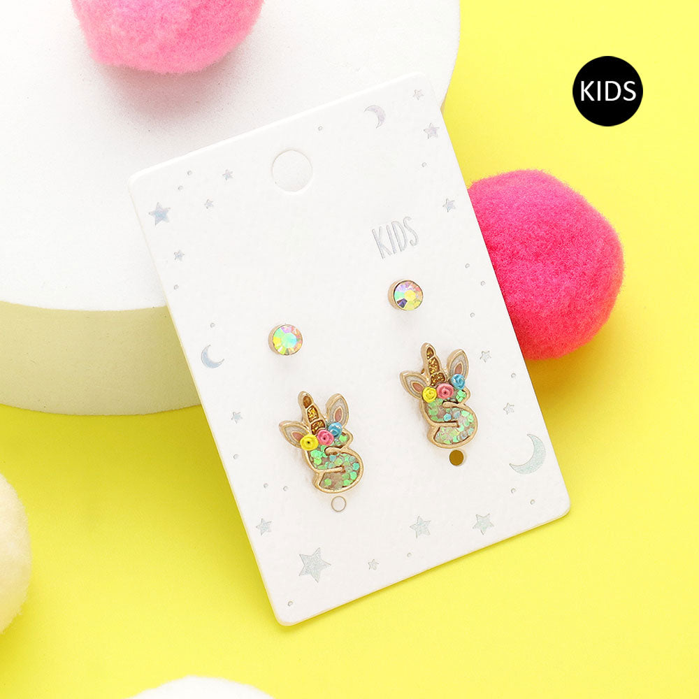 iLLASPARKZ 2Pairs - S Round Stone Unicorn Monogram Stud Kids Earrings