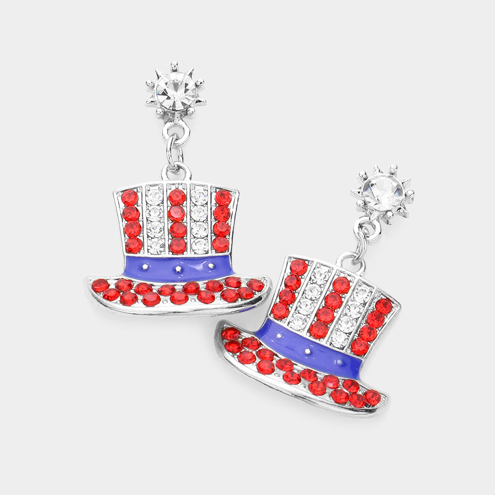 iLLASPARKZ American USA Flag Rhinestone Hat Dangle Earrings