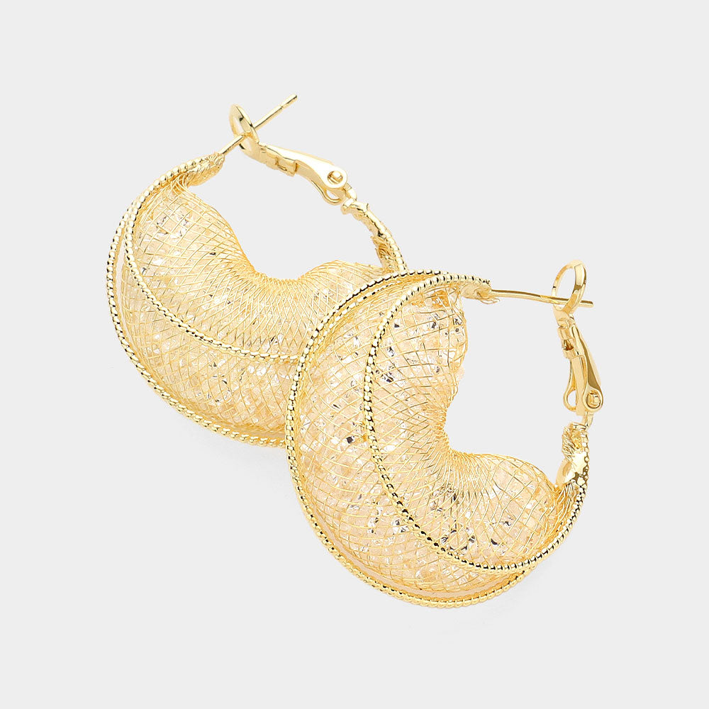 iLLASPARKZ Beads Inside Metal Mesh Crescent Hoop Earrings