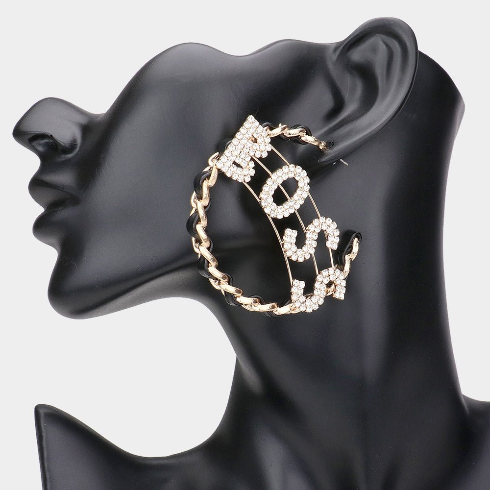 iLLASPARKZ BOSS Message Accented Faux Leather Chain Hoop Earrings