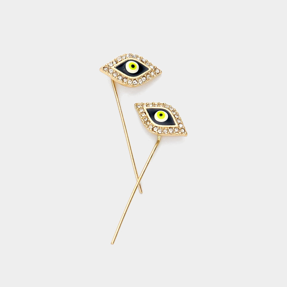 iLLASPARKZ Crystal Accented Enamel Evil Eye Ear Pin Earrings