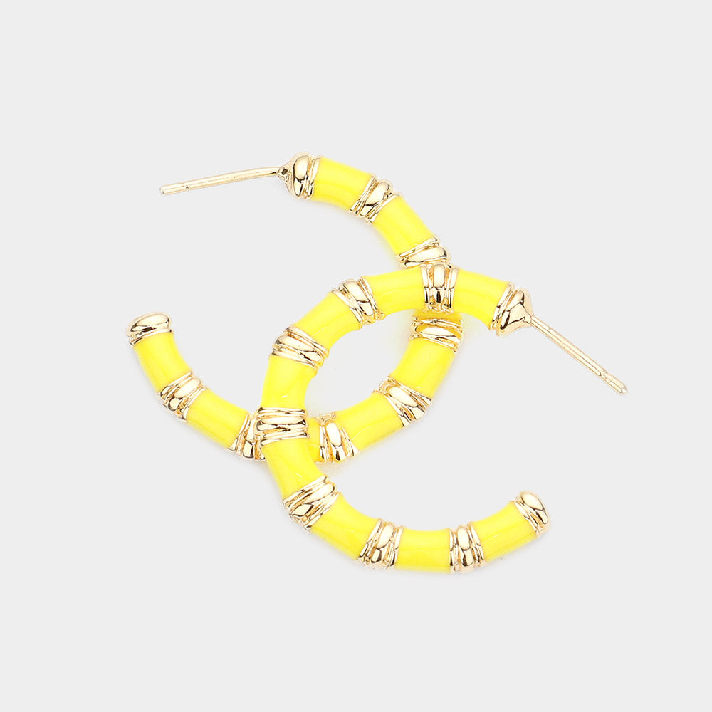 iLLASPARKZ Enamel Metal Bamboo Hoop Earrings