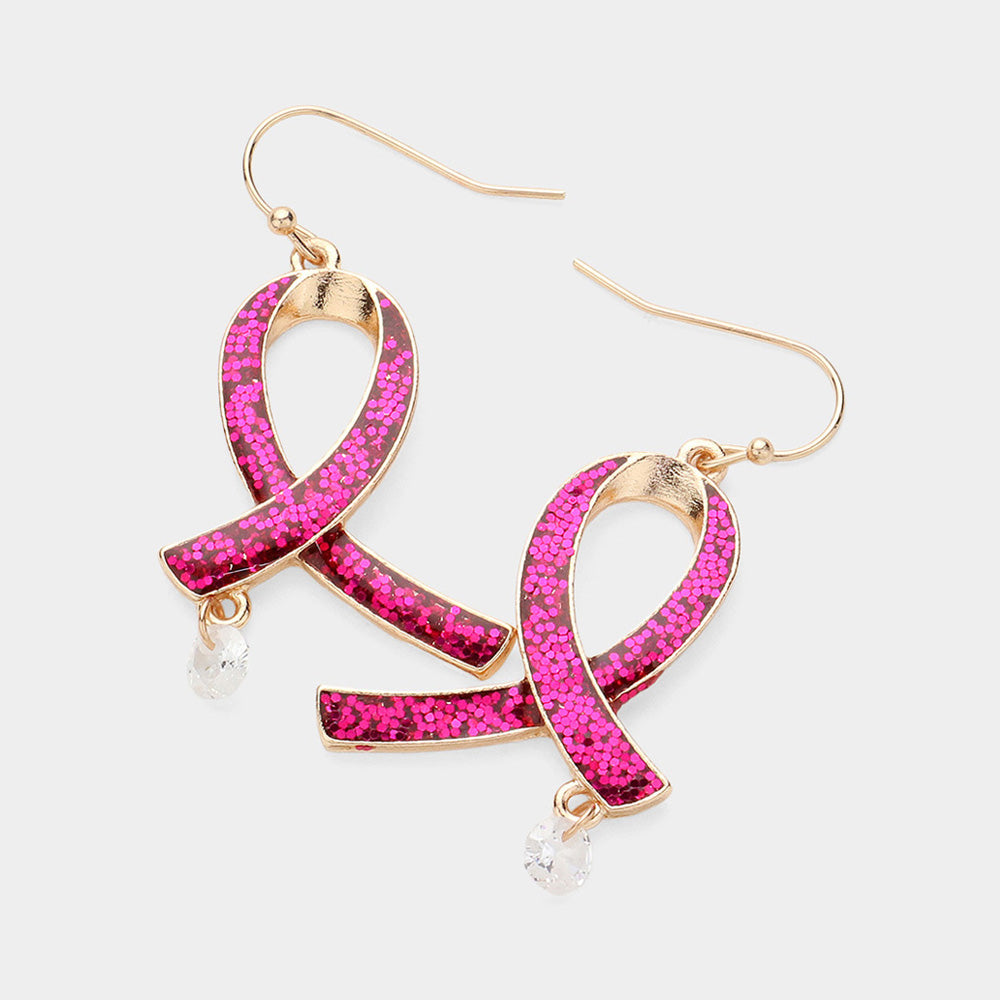 iLLASPARKZ Faceted Stone Pointed Glittered Enamel Pink ribbon Dangle Earrings