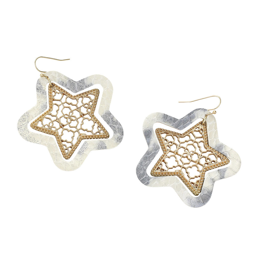 iLLASPARKZ Faux Leather Moroccan Filigree Star Dangle Earrings