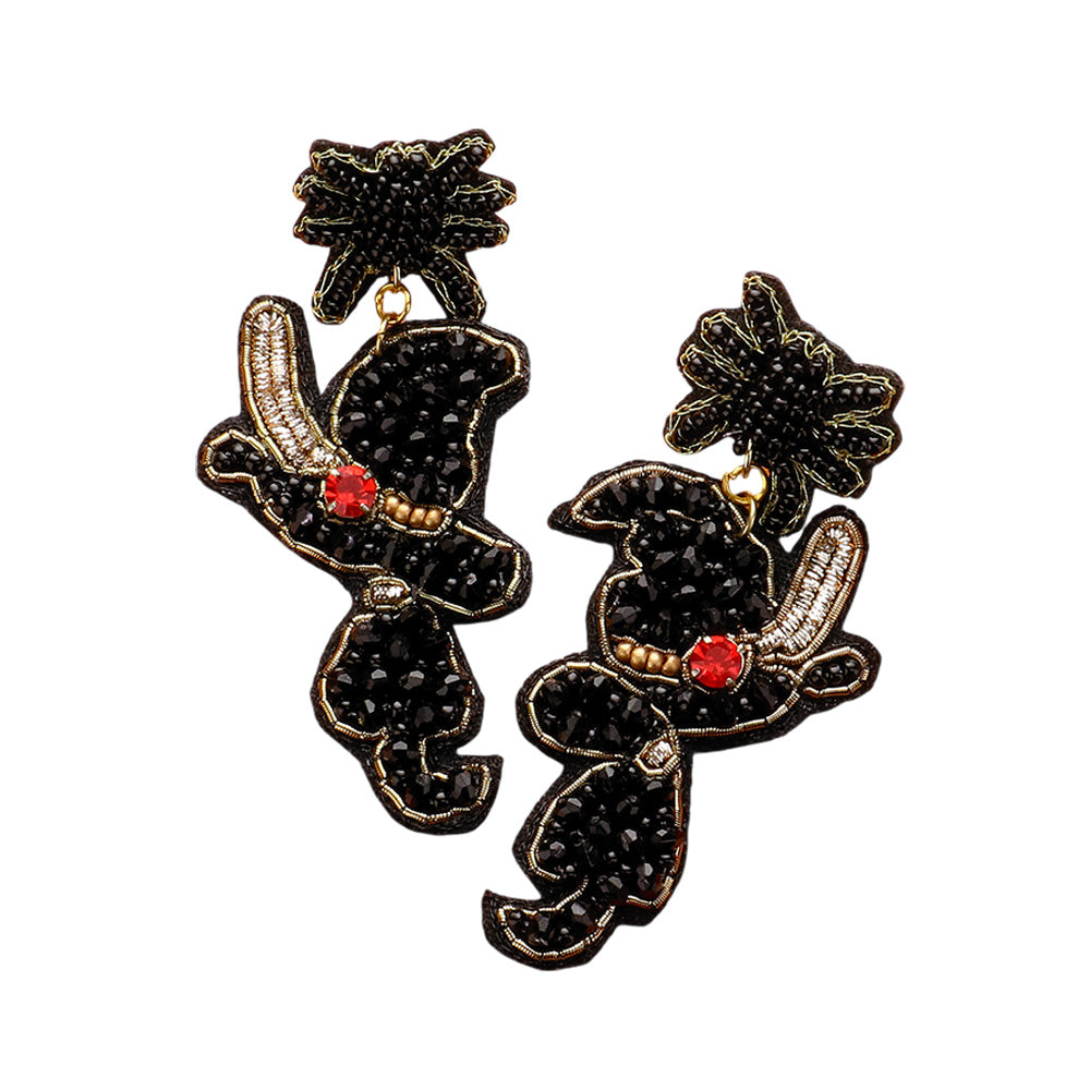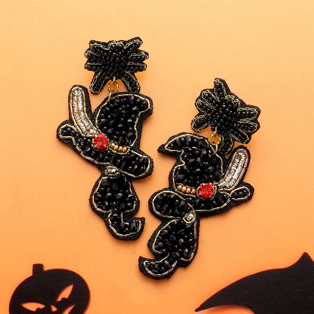 iLLASPARKZ Felt Back Multi Beaded Witch Hat Broom Dangle Earrings