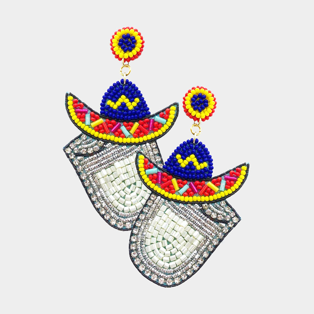 iLLASPARKZ Felt Back Seed Beaded Cowboy Hat Accented Dangle Earrings