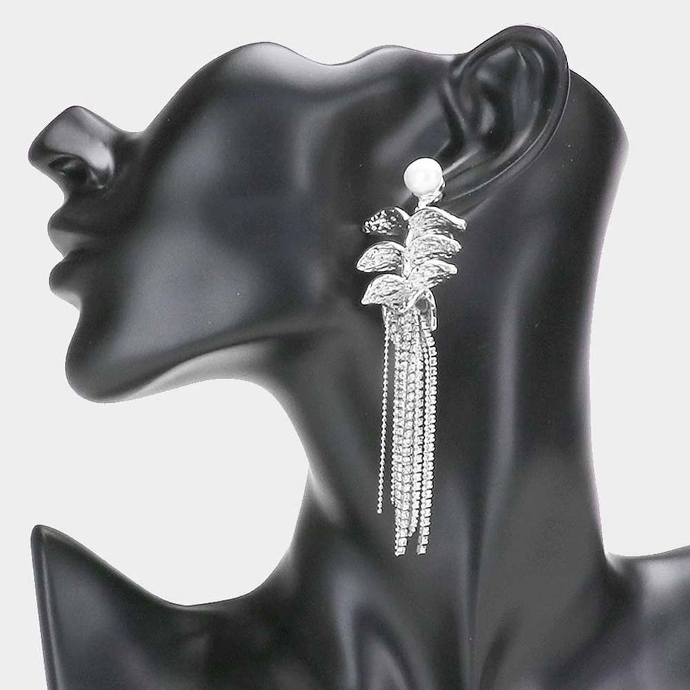 iLLASPARKZ Freshwater Pearl Metal Sprout Detail Chain Tassel Earrings