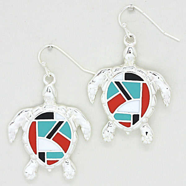 • Geometric Lacquered Enamel Metal Turtle Earrings