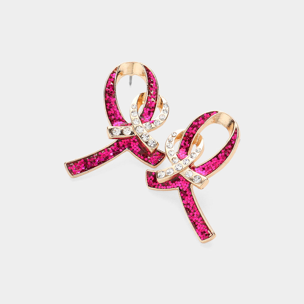 iLLASPARKZ Glittered Double Pink Ribbon Earrings