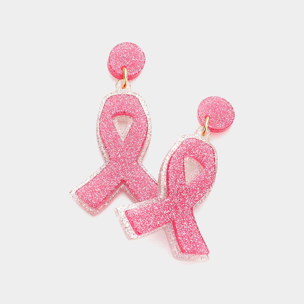 iLLASPARKZ Glittered Resin Pink Ribbon Dangle Earrings
