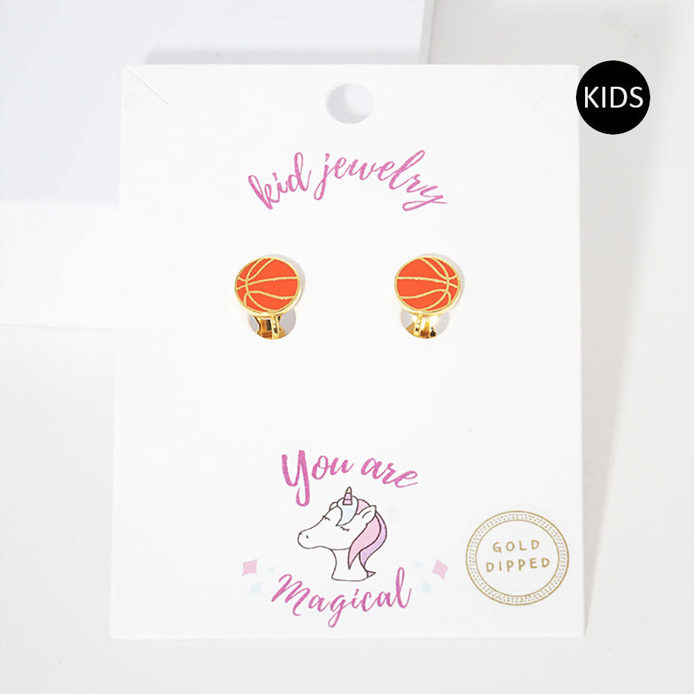 iLLASPARKZ Gold Dipped Enamel Basketball Clip on Kids Earrings