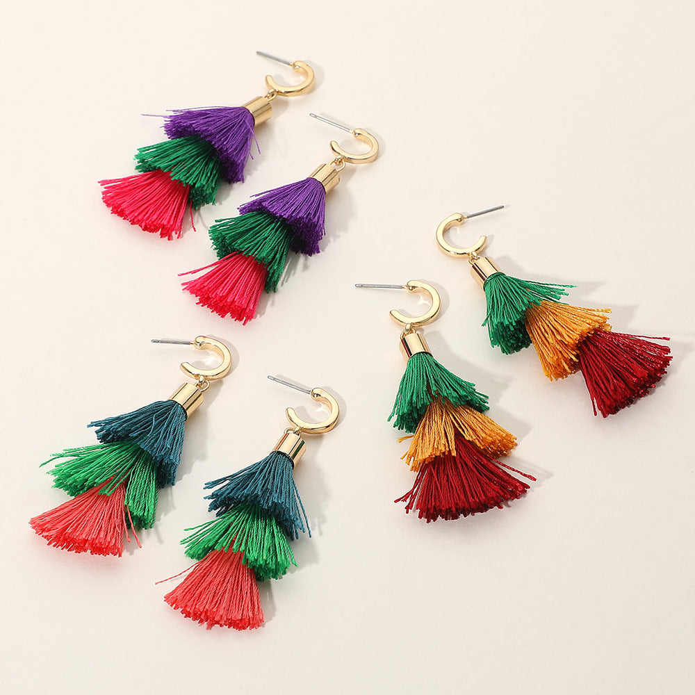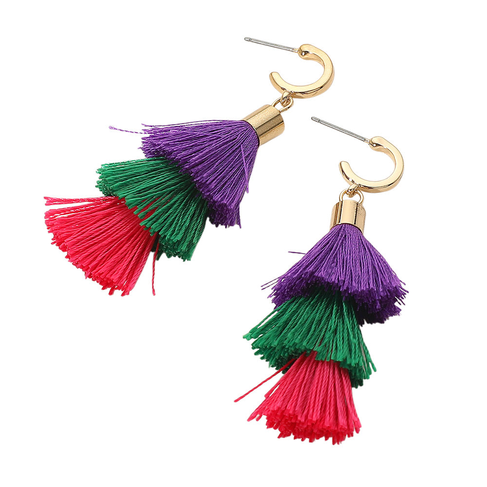 Add a pop of personality to your outfit with these tiered tassel drop earrings. Designed for a dynamic, fashion-forward look that's perfect for casual and festive occasions. Lightweight and easy to wear all day.
