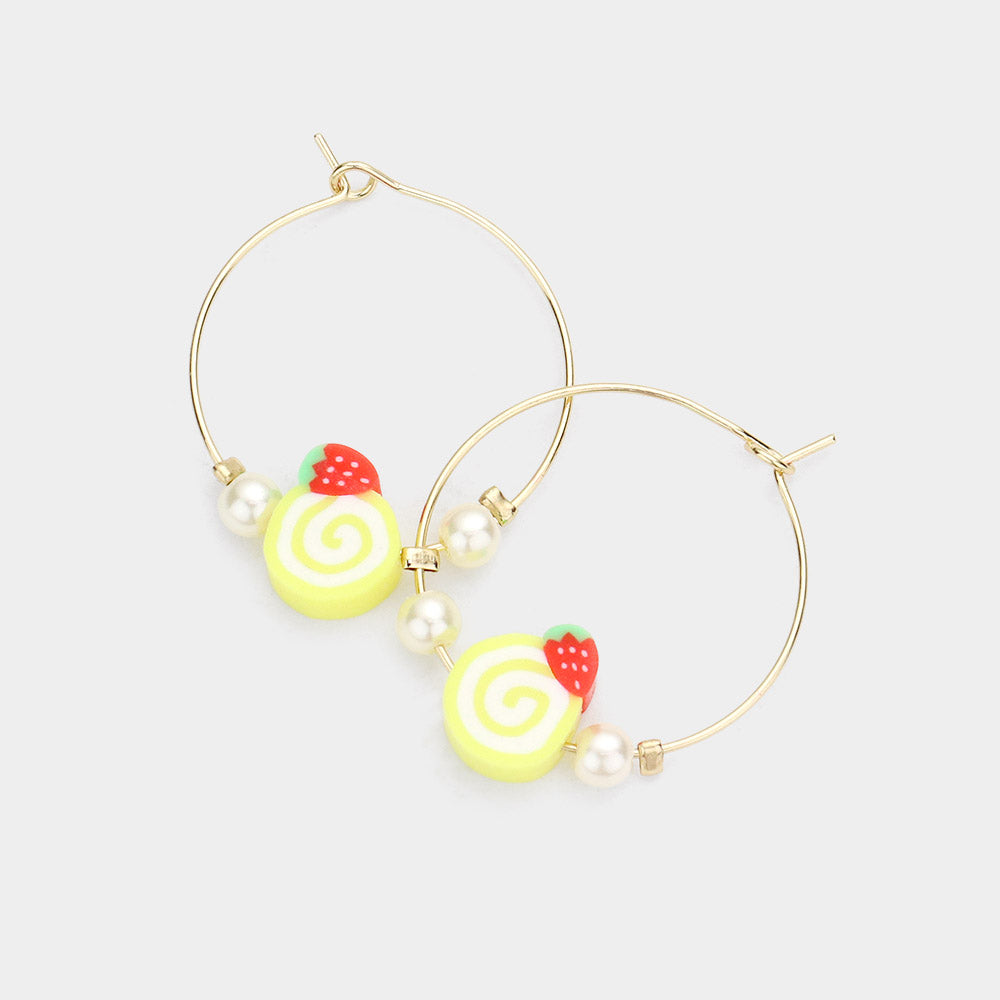 iLLASPARKZ Pearl Strawberry Accented Metal Hoop Earrings
