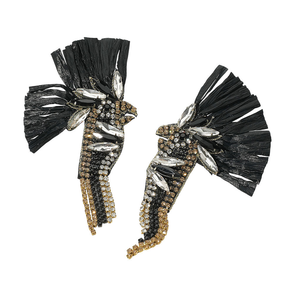 iLLASPARKZ Raffia Pointed Stone Embellished Bird Earrings