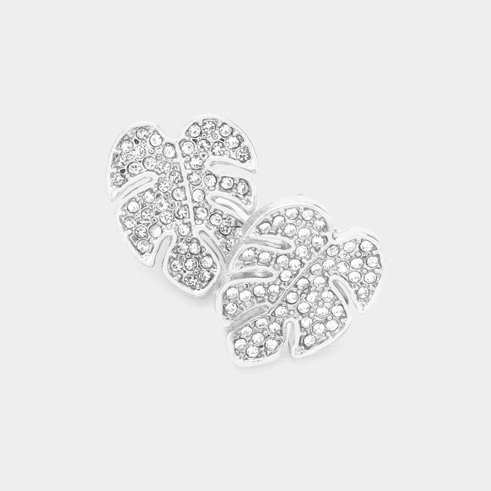 iLLASPARKZ Rhinestone Embellished Tropical Leaf Stud Earrings