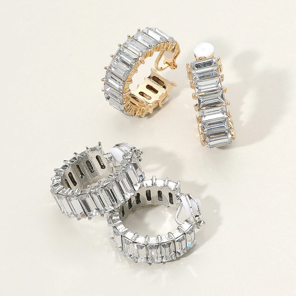 iLLASPARKZ Stone Cluster Embellished Hoop Clip On Earrings