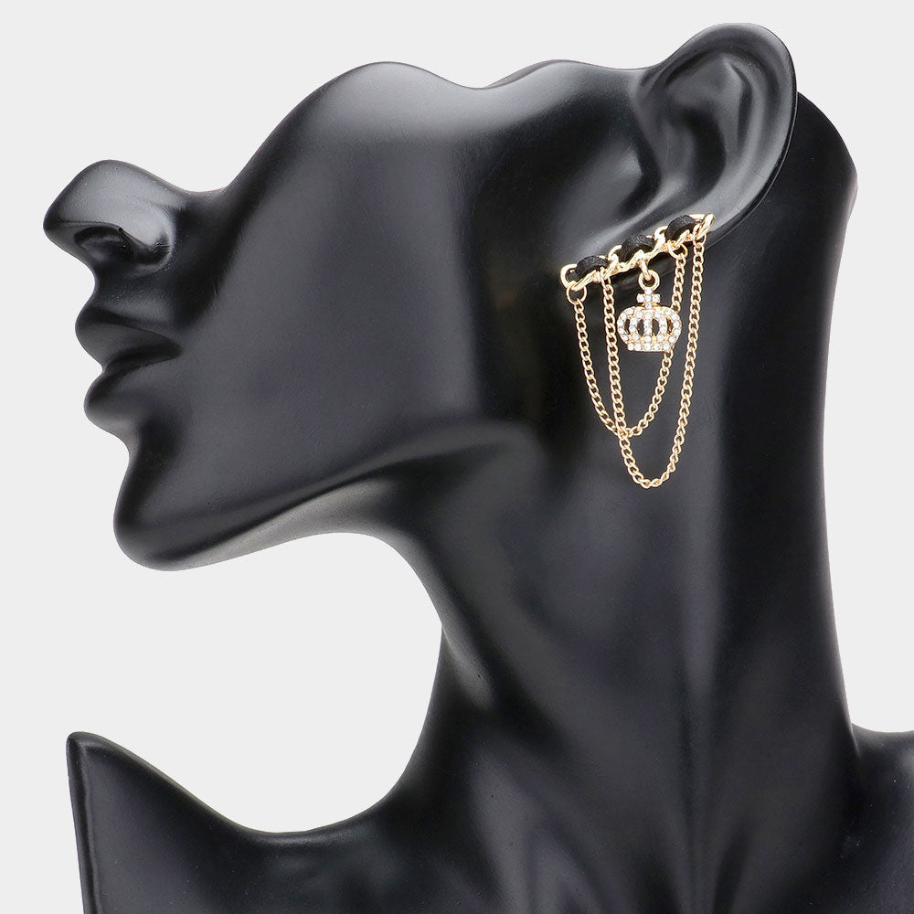 iLLASPARKZ Stone Paved Crown Chain Embellished Earrings