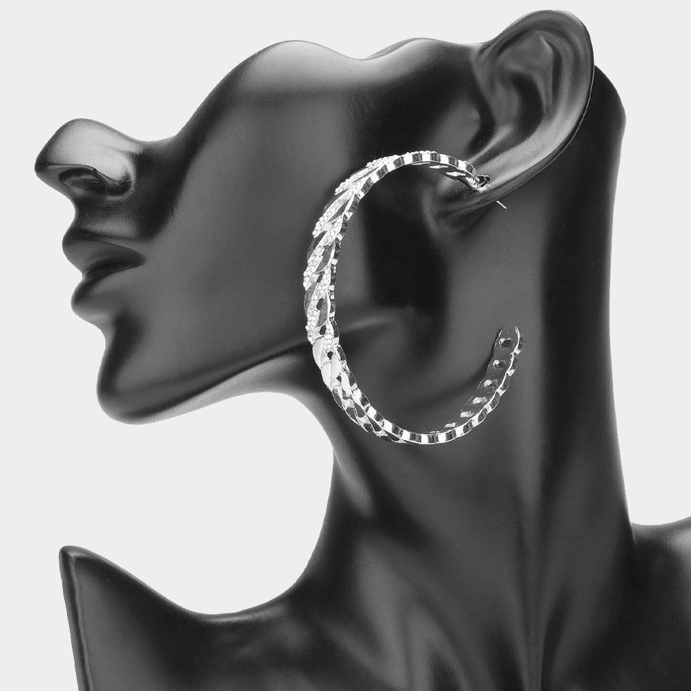 iLLASPARKZ Stone Paved Metal Chain Shaped Hoop Earrings