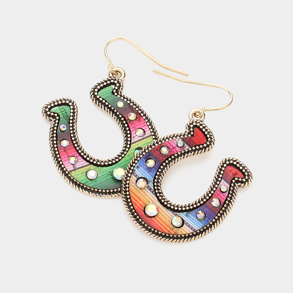iLLASPARKZ Western Stone Embellished Rainbow Horseshoe Dangle Earrings