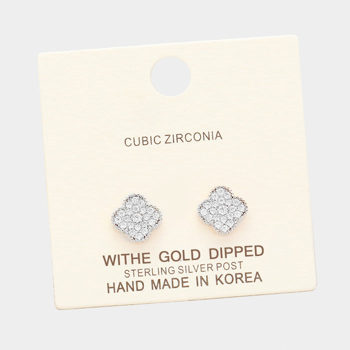 iLLASPARKZ White Gold Dipped Cubic Zirconia Clover Quatrefoil Earrings