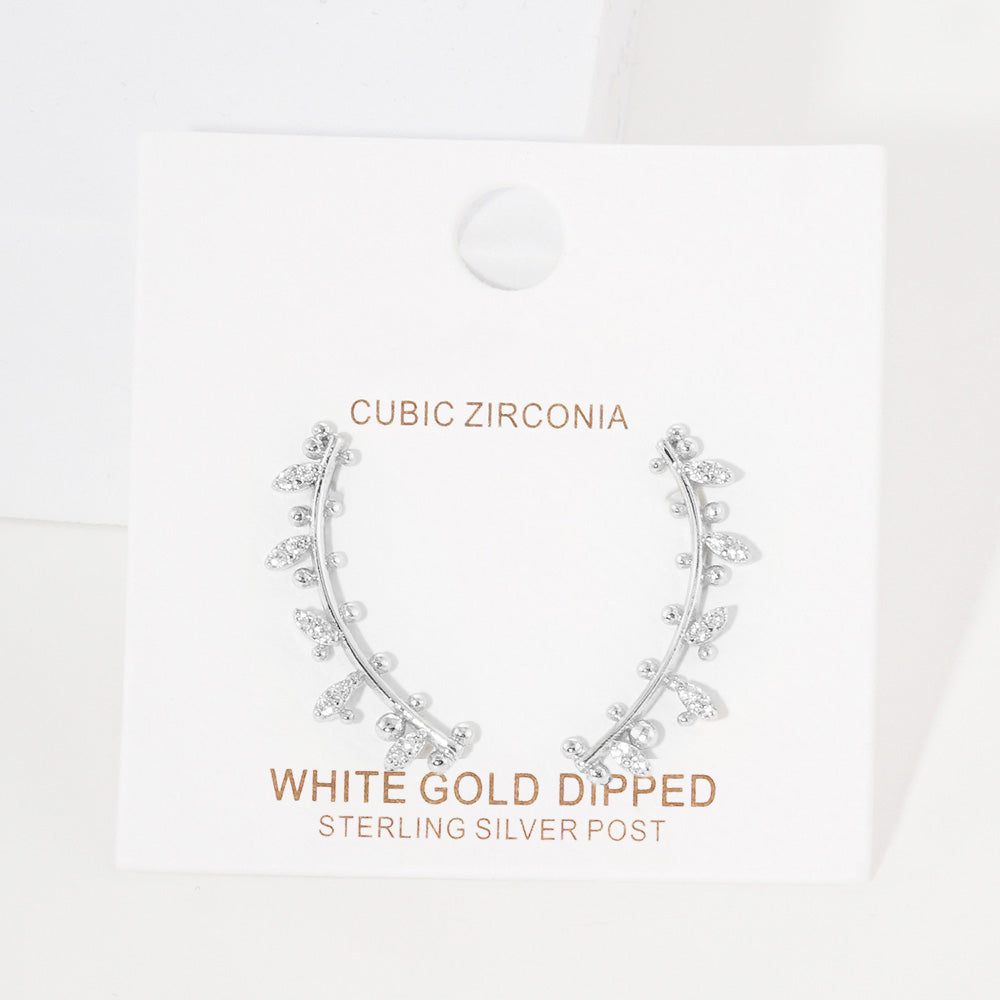 iLLASPARKZ White Gold Dipped Cubic Zirconia Floral Sprout Drop Earrings