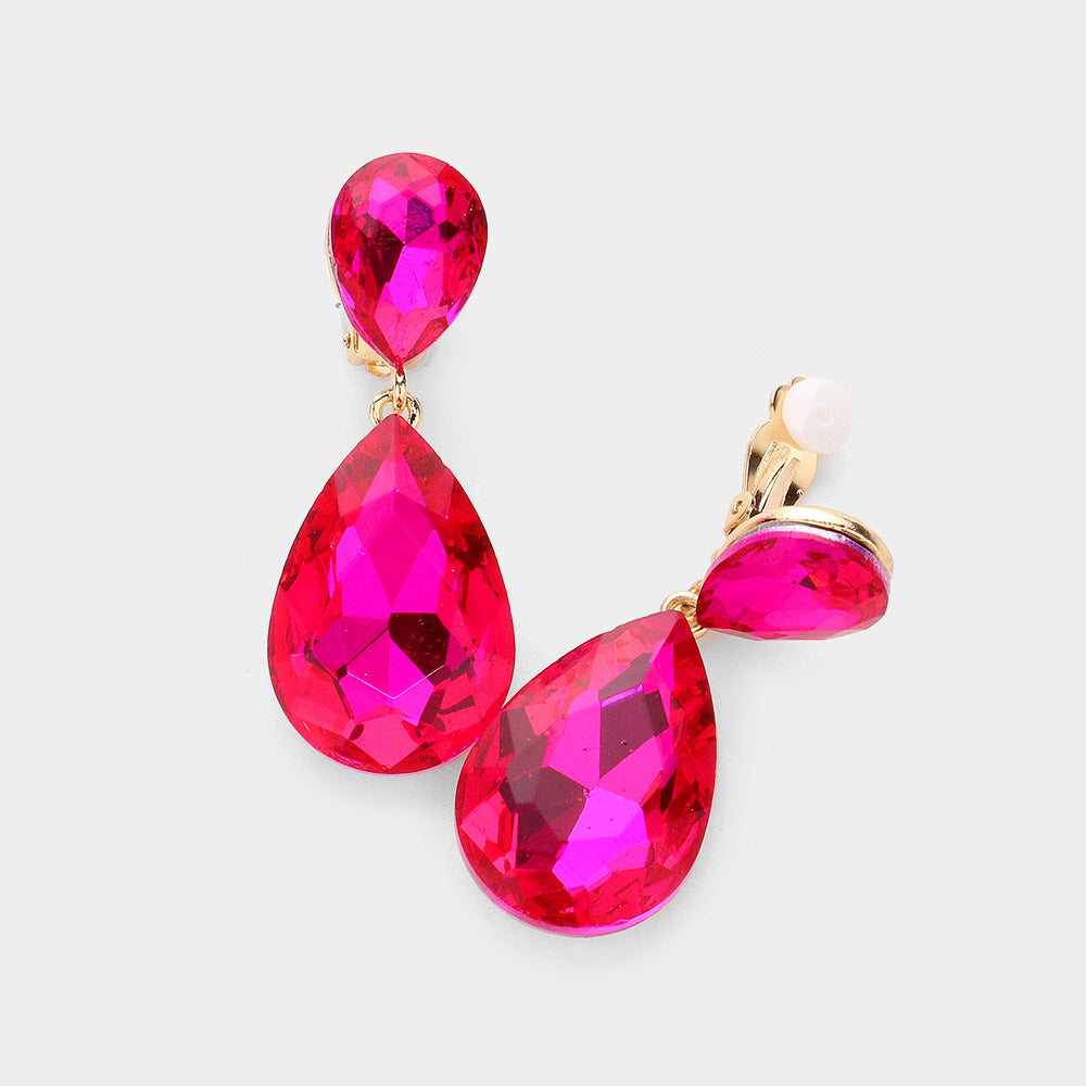 iLLASPARKZ Glass Crystal Double Teardrop Clip on Evening Earrings