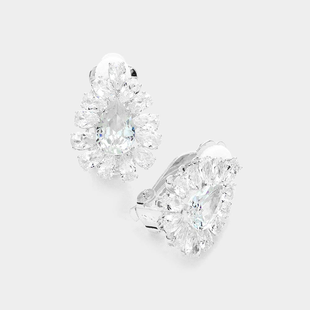 iLLASPARKZ Teardrop Stone Cluster Clip On Evening Earrings