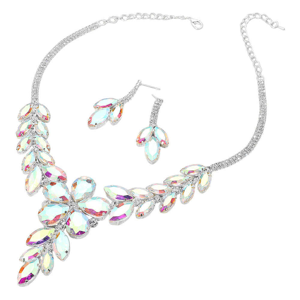 iLLASPARKZ Flower Accented Marquise Stone Cluster Evening Necklace