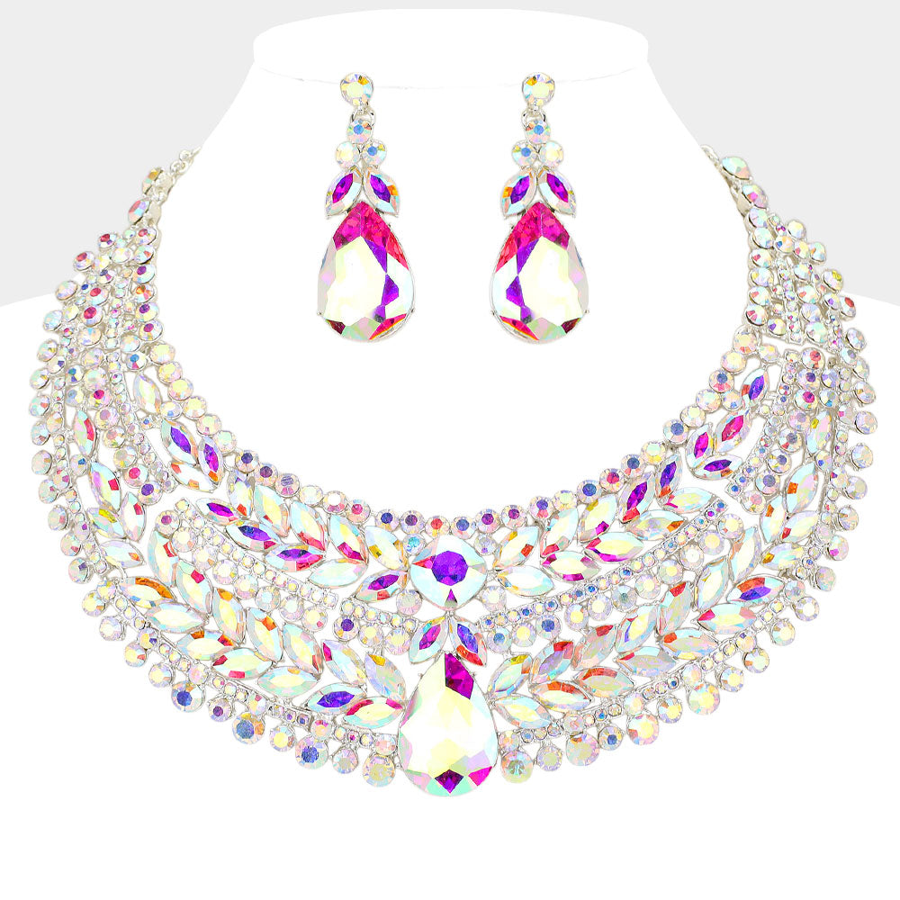 iLLASPARKZ Teardrop Stone Accented Marquise Round Stone Embellished Chunky Collar Evening Necklace