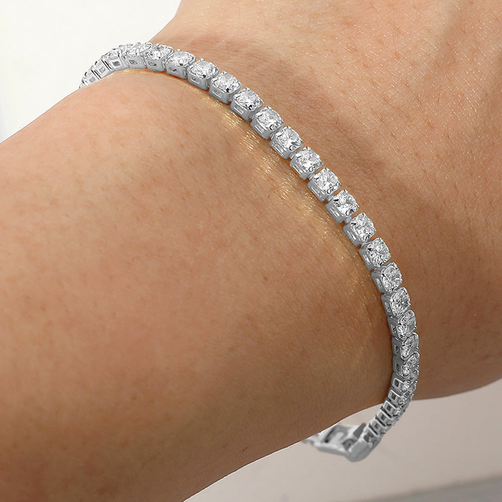 Timeless tennis bracelet featuring a line of dazzling round stones in a sleek and refined setting. Adds a touch of sophistication to any look, perfect for formal occasions or everyday elegance.