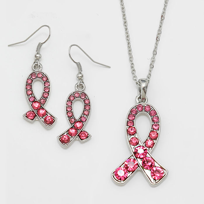 iLLASPARKZ Crystal Pave Pink Ribbon Pendant Necklace