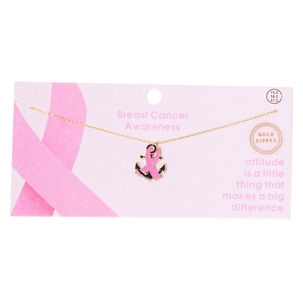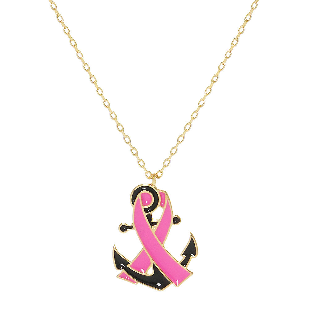 iLLASPARKZ Gold Dipped Enamel Anchor Pink Ribbon Pendant Necklace