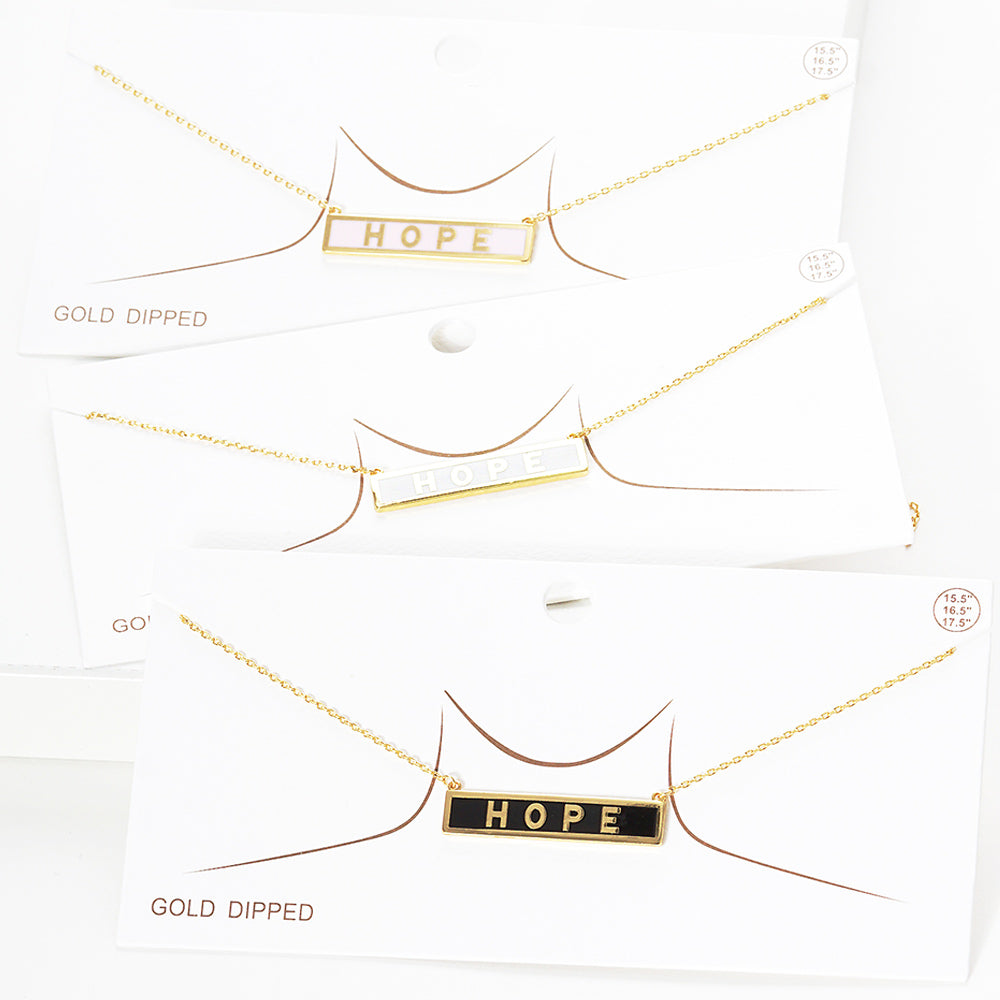 iLLASPARKZ HOPE Gold Dipped Enamel Rectangle Message Pendant Necklace