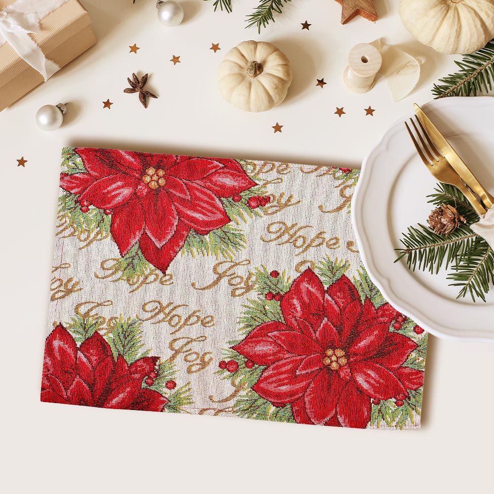 iLLASPARKZ Hope Joy Message Poinsettia Flower Christmas Tapestry Placemat