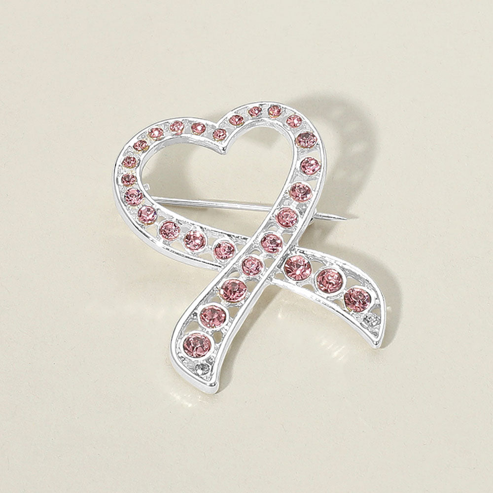 iLLASPARKZ Stone Paved Heart Pink Ribbon Pin Brooch