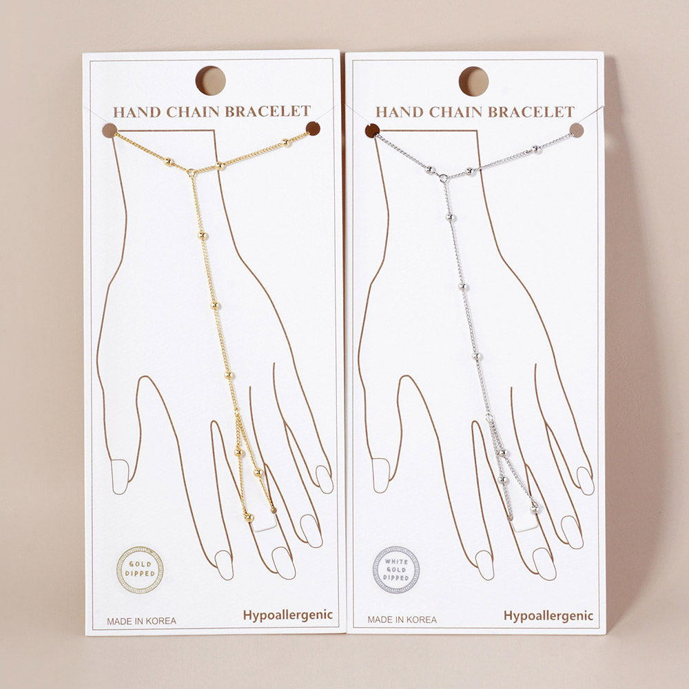 Stylish hand chain bracelet with dainty bead accents. Perfect for layering or wearing solo. Designed for elegance and comfort.